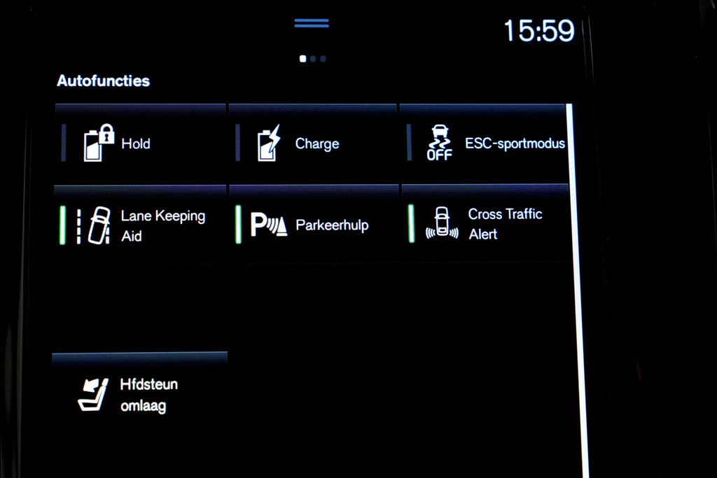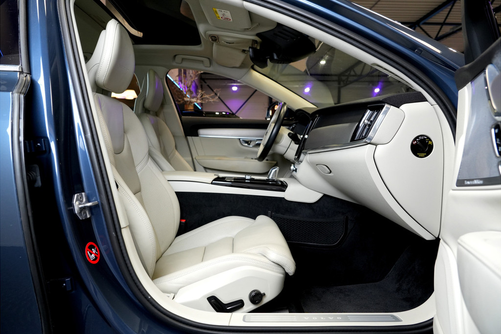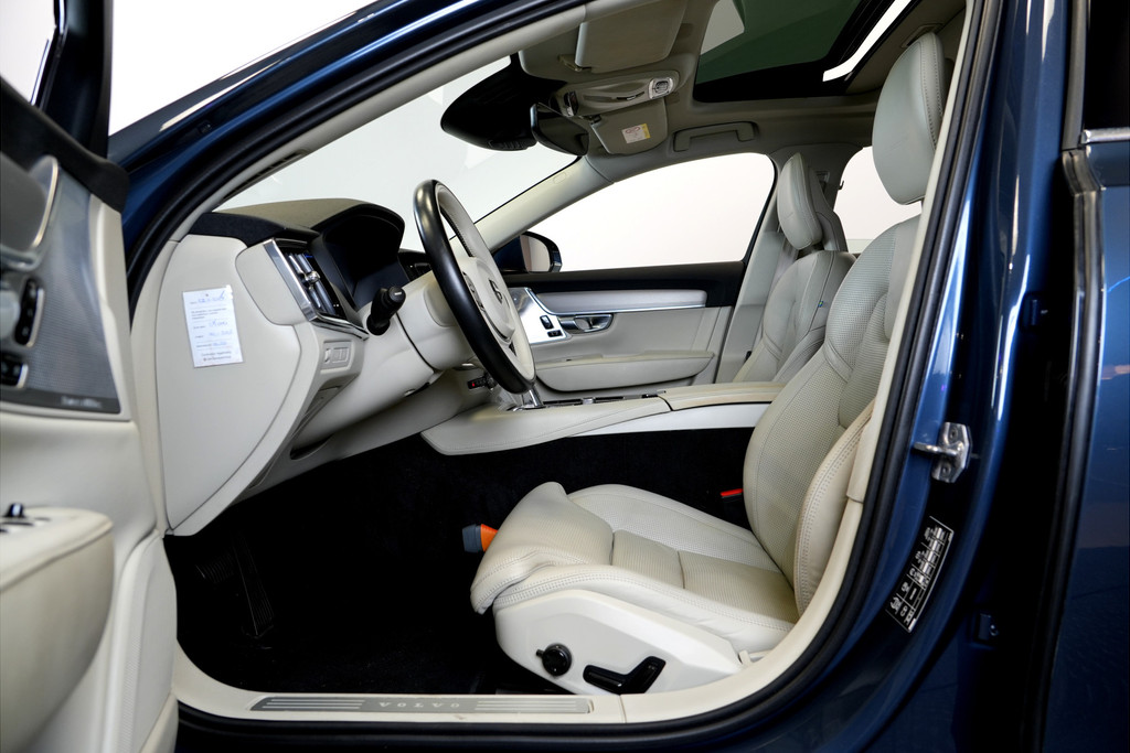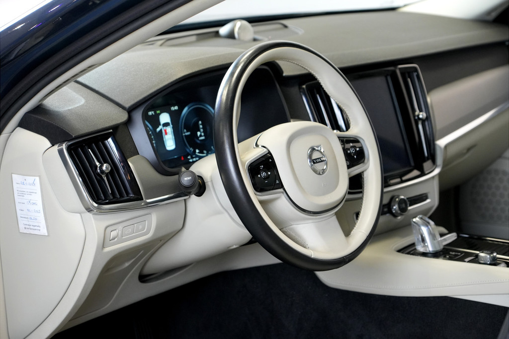 Zoals u mag verwachten van deze Volvo S90 is hij uitgerust met een reeks aan actieve veiligheidssystemen. Tijdens de rit hebt u altijd een bijrijder, want de verkeersbord-detectie leest de borden langs de weg en projecteert ze voor u op het instrumentarium. Onbedoeld buiten de rijstrook raken wordt voorkomen door het Lane-keeping systeem. Het forward collision warning-systeem is constant alert en detecteert via sensor de afstand tot voorliggers. Wordt die te klein, dan volgt een automatische waarschuwing. Ook helpen het dodehoekdetectie, City Safety System, hill hold functie, brake assist, vermoeidheidsherkenning en bandenspanningcontrolesysteem, uw rit tot een veilige rit te maken.